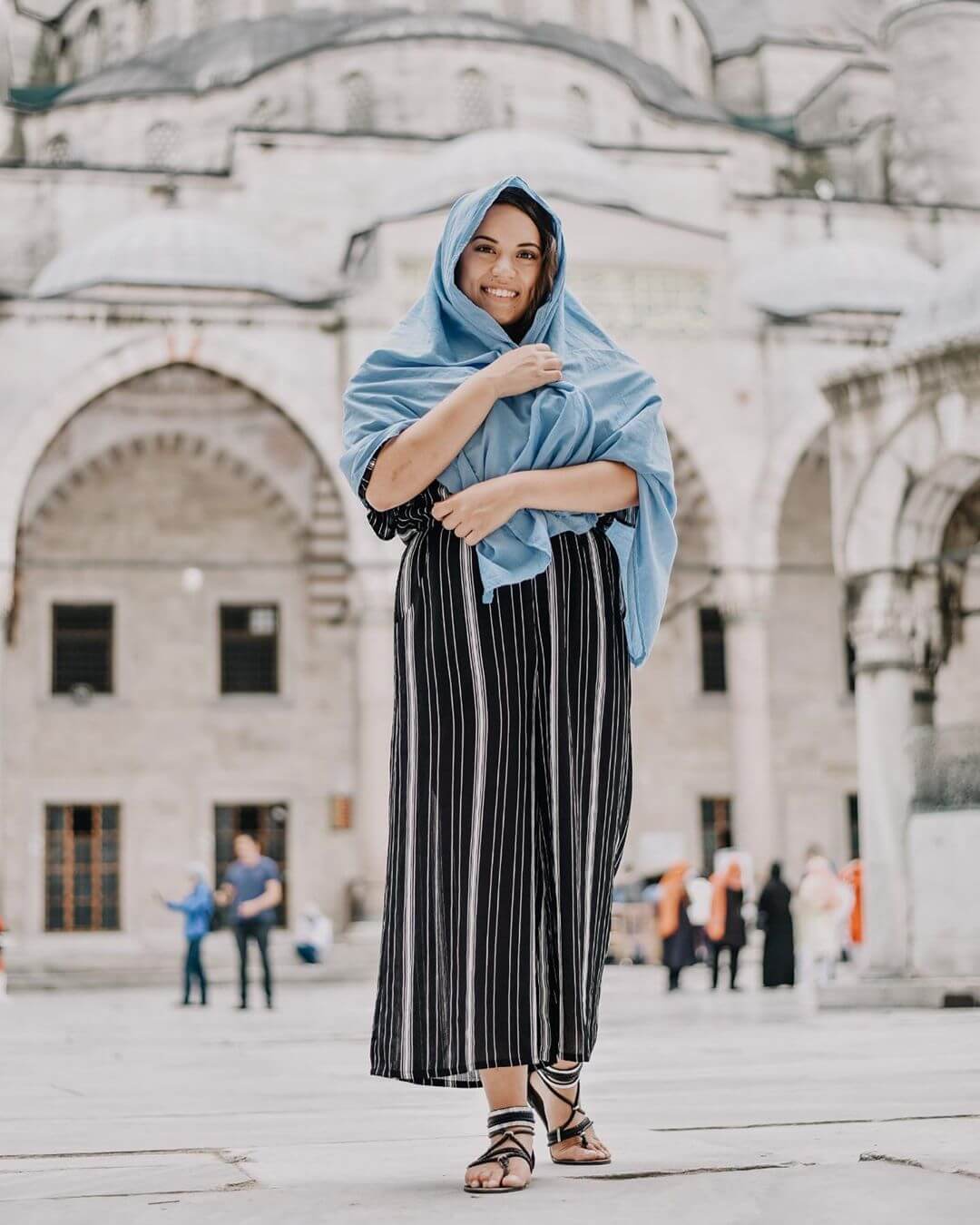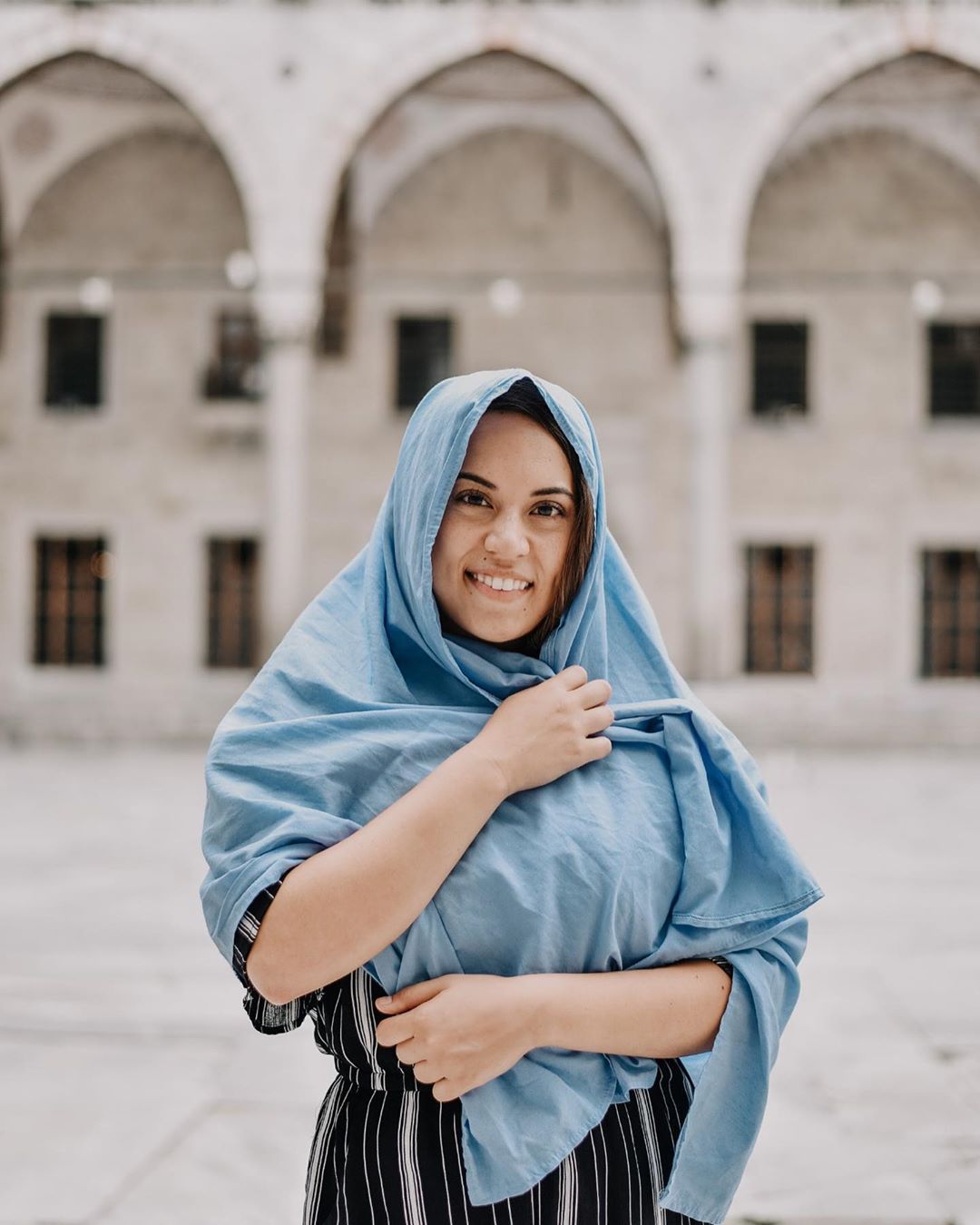 Before you go in, you will have to take off your shoes (plastic bags to carry them are provided) and women need to cover their hair with a headscarf (also provided).